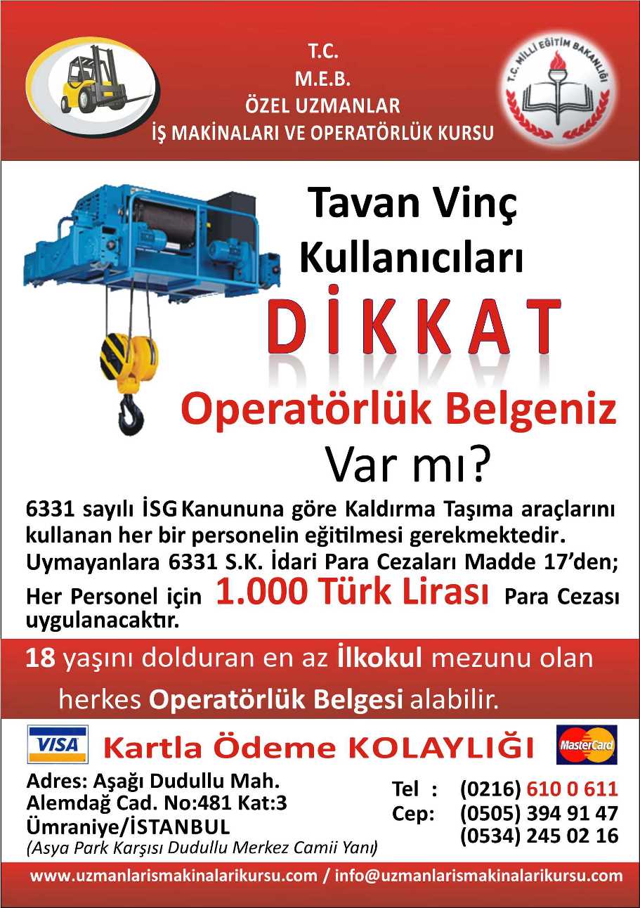 Bize Ulaşın : 0552 611 0611 // Email : info@uzmanlarismakinalarikursu.com